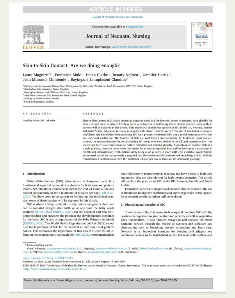 Some exciting news! I was asked to be a part of an article about Skin to Skin contact for infants in UK and Zambia. I wrote down about my experience and handed it in, and I am now a co-author of my first ever published article in the Journal of Neonatal Nursing! I feel so proud of myself and excited that things are progressing and more things on the horizon for my new career path in Neoantal nursing. The link if you would like to read the article is